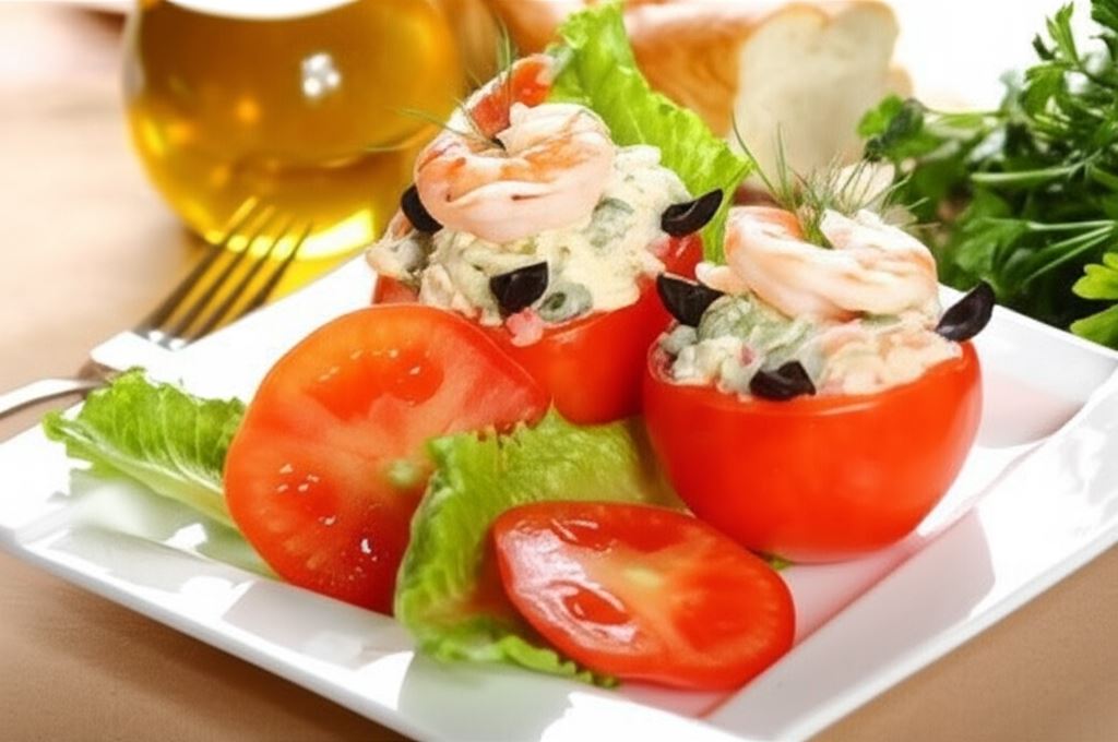 Sałatka z krewetek w pomidorach – letnia uczta dla podniebienia