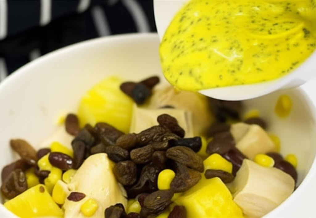 Soczyste kawałki kurczaka otulone aromatyczną pastą curry, słodkie kostki ananasa i chrupiąca kukurydza tworzą harmonijną kompozycję smaków w tej wyjątkowej sałatce. Delikatne mięso drobiowe, przygotowane według sprawdzonej metody z kostką Knorr, zachowuje swoją soczystość, a kremowy sos na bazie jogurtu i majonezu doskonale łączy wszystkie składniki.