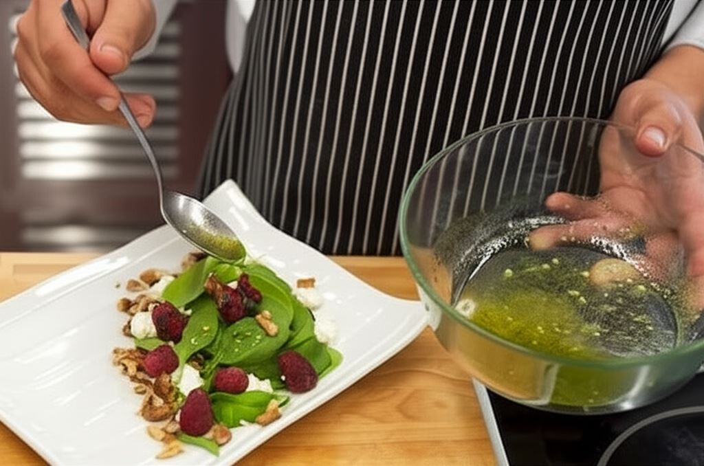 Prażenie orzechów włoskich na suchej patelni wydobywa z nich intensywniejszy smak i aromat. Ten prosty zabieg kulinarny znacząco podnosi walory smakowe całej sałatki. Dodatkowo, połączenie szpinaku z malinami to nie tylko uczta dla podniebienia, ale także bomba witaminowa wspierająca odporność i dobre samopoczucie.