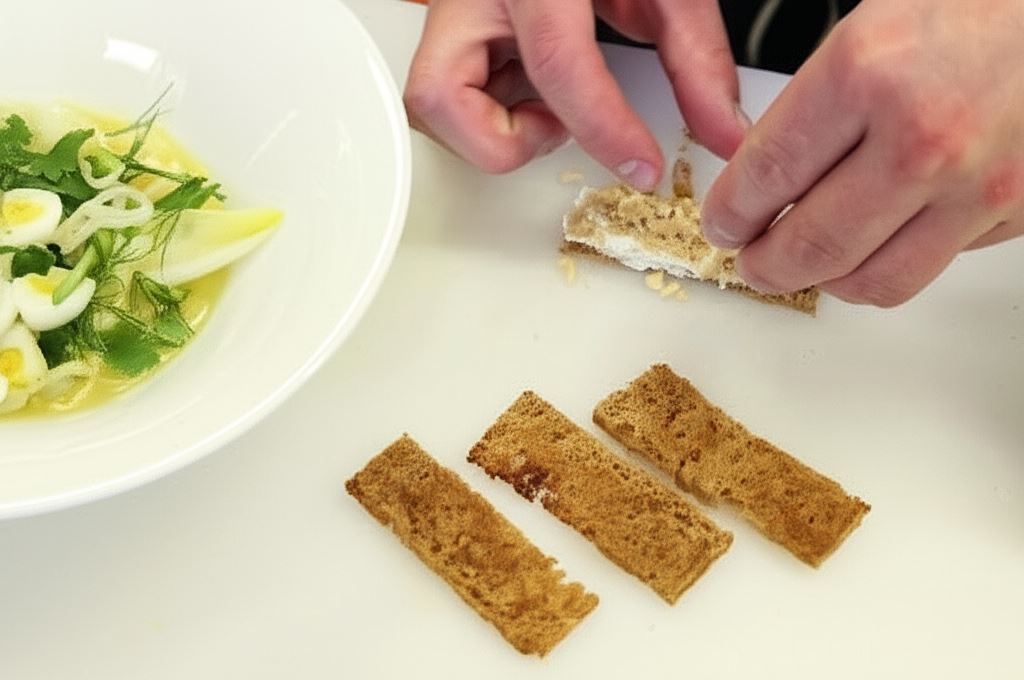 Delikatna sałatka z młodych ziół to prawdziwa eksplozja świeżości i aromatu. Soczyste listki koperku, natki pietruszki, musztardowca i kolendry tworzą zieloną bazę, którą dopełniają cieniutkie plasterki słodkawego kopru włoskiego (fennela). Całość skropiona jest aromatyczną oliwą tymiankową i sokiem z cytryny, co nadaje potrawie orzeźwiający charakter.