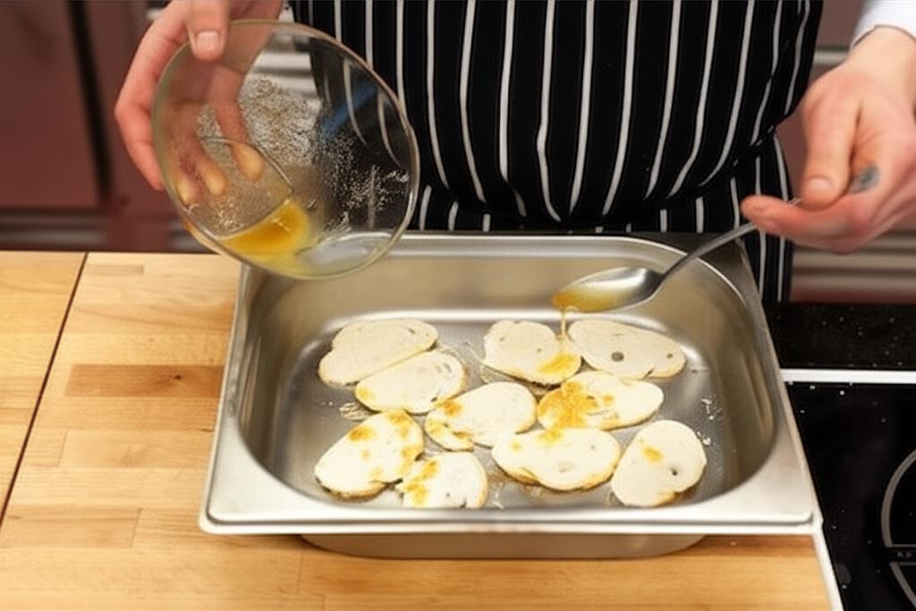 Plastry bagietki skrop delikatnie przygotowaną marynatą i zapiecz w piekarniku do złotego koloru.