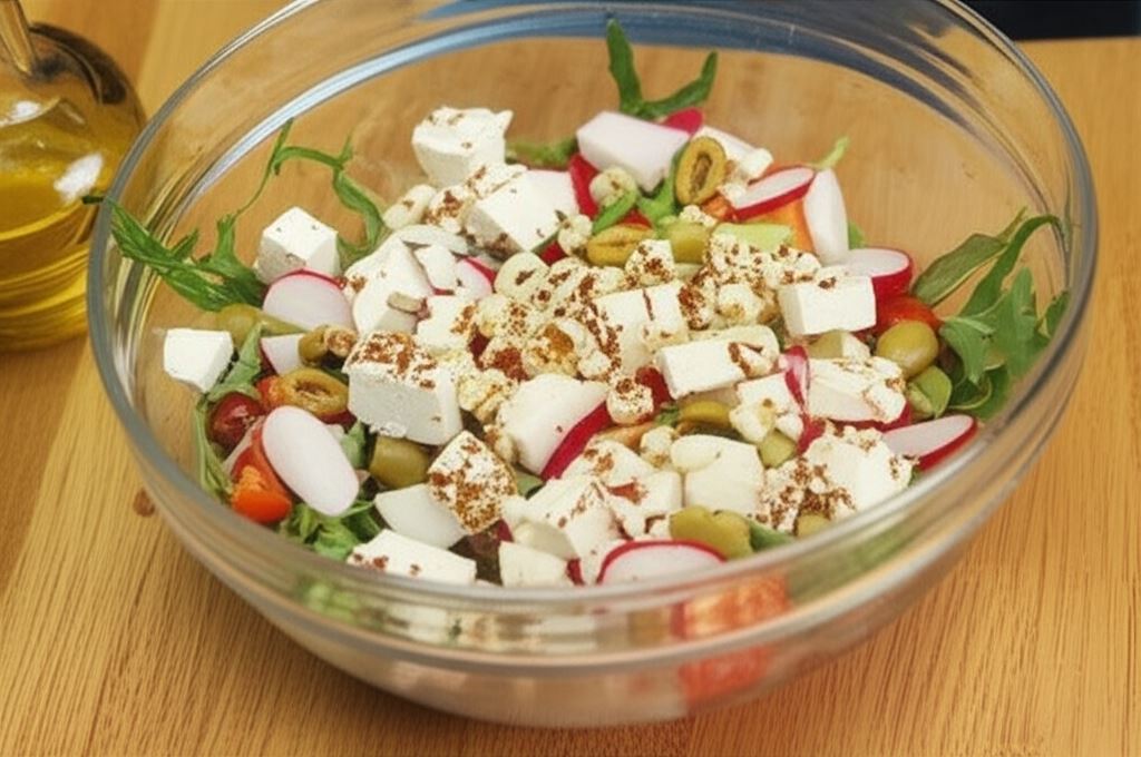 Jeśli lubisz intensywne smaki, możesz zastąpić fetę serem pleśniowym (wegetarianie mogą wybrać wersję wege). Dla miłośników mięsa świetnym dodatkiem będzie grillowana pierś z kurczaka z ziołami, która nada sałatce bardziej sycący charakter i wzbogaci jej profil smakowy.