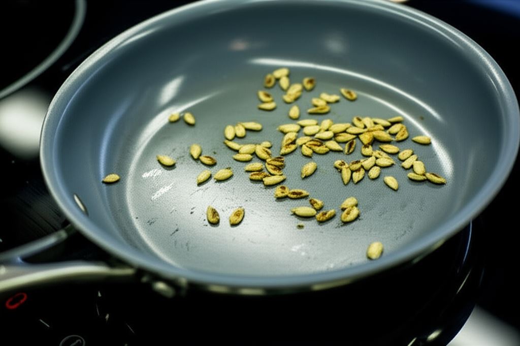 Nasiona słonecznika podpraż na suchej, nagrzanej patelni.