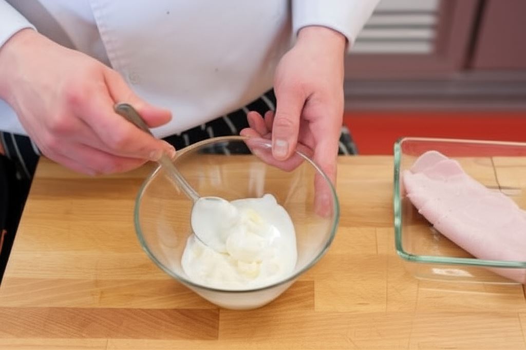 W miseczce połącz majonez z jogurtem i przypraw według gustu.