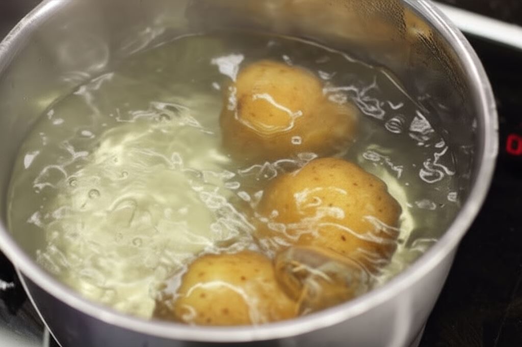 Ziemniaki ugotuj w skórce w delikatnie posolonym wrzątku, dopóki nie staną się miękkie, ale nie będą się rozpadały.