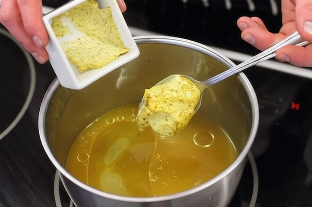 Wlej szklankę wody do garnka, wsyp Bulion na włoszczyźnie Knorr i doprowadź do wrzenia.