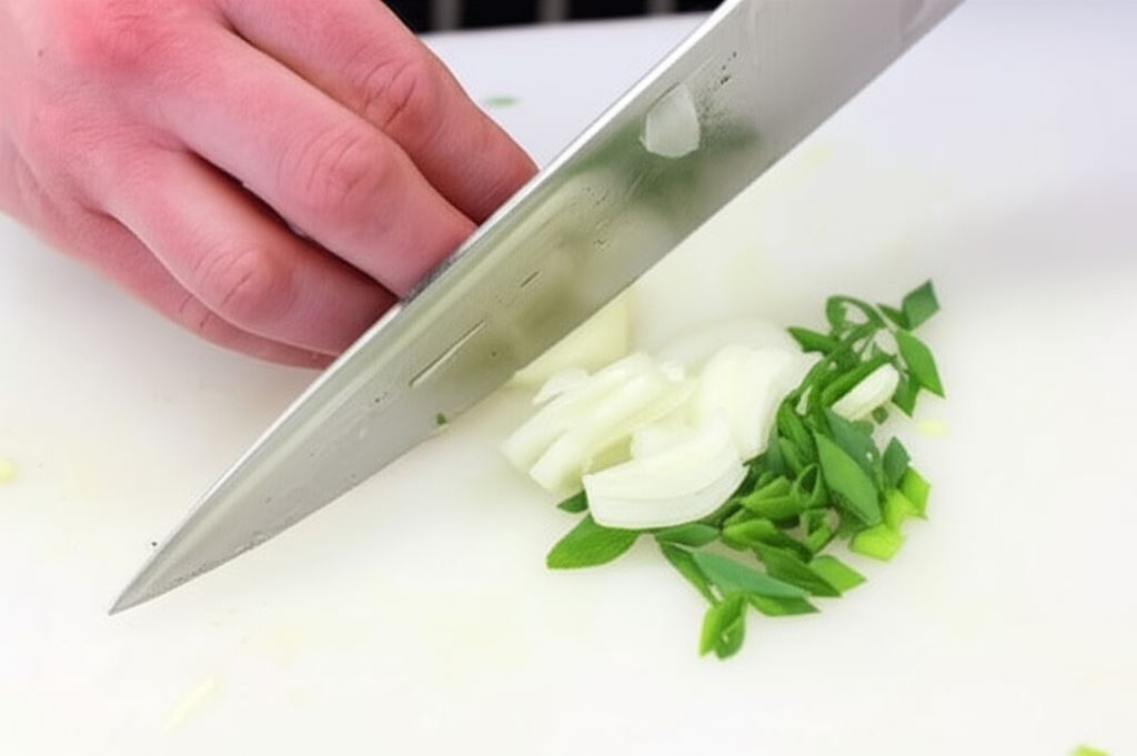 Dymki cebulowe, część zieloną i białą, posiekaj na cienkie paski. Sałatę serwuj na zimno oprószoną dymką.