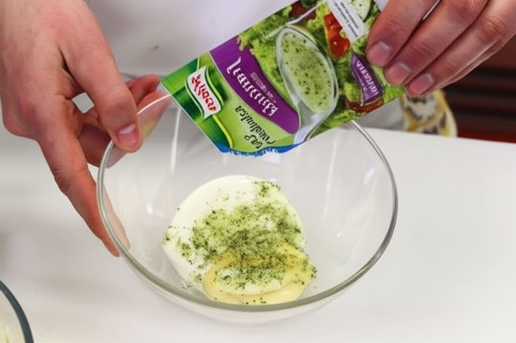 Połącz sos sałatkowy Knorr ze śmietaną i Majonezem Babuni Hellmann's.