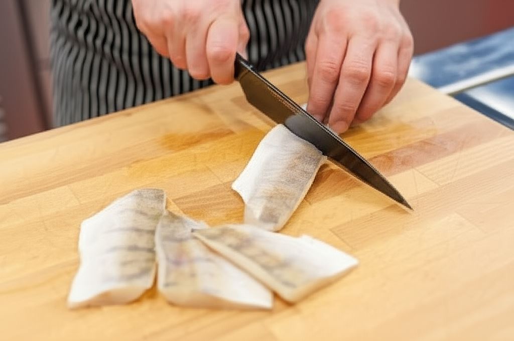 Podziel filety z sandacza na porcje odpowiedniej wielkości wedle własnego uznania.