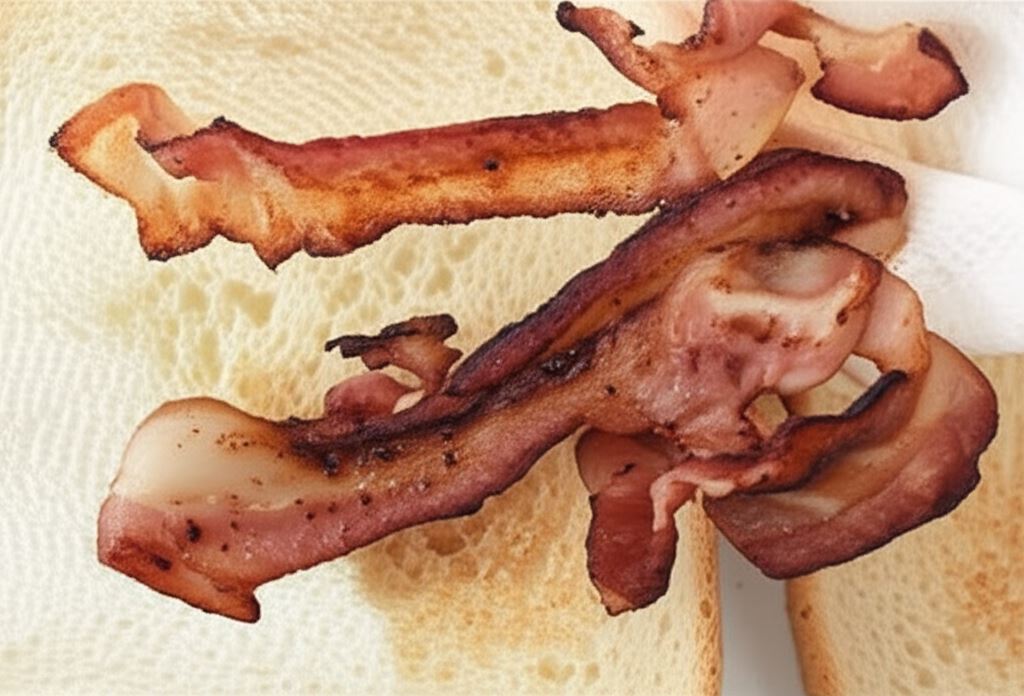 Grzanki przyrumień w opiekaczu, a boczek usmaż na patelni i odcedź z tłuszczu.