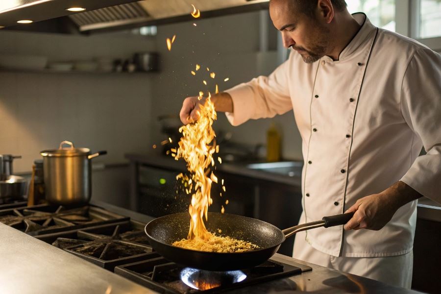 Wskazówka eksperta: Dla idealnego sauté warto zainwestować w profesjonalną patelnię ze stali węglowej lub żeliwa. Naczynia te utrzymują wysoką temperaturę nawet po dodaniu zimnych składników, co jest kluczowe dla uzyskania charakterystycznej tekstury.