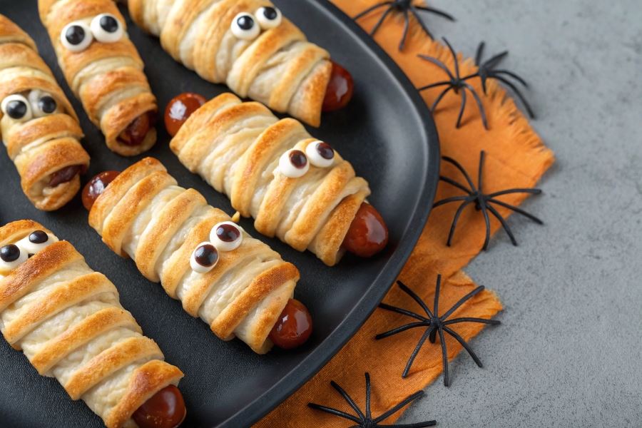 Wskazówka: Aby uzyskać złocisty kolor mumii, posmaruj ciasto roztrzepanym jajkiem przed pieczeniem.