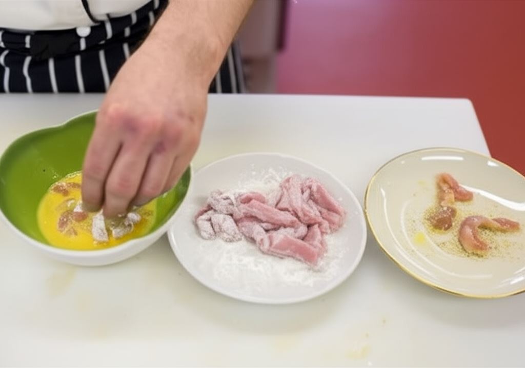 Jajka rozbij. Schab zanurz w mące, sezamie i jajku. Potem smaż na mocno rozgrzanej patelni.