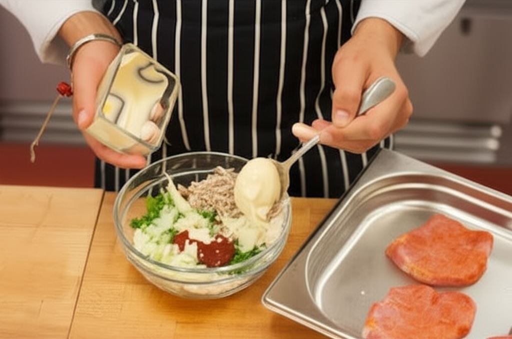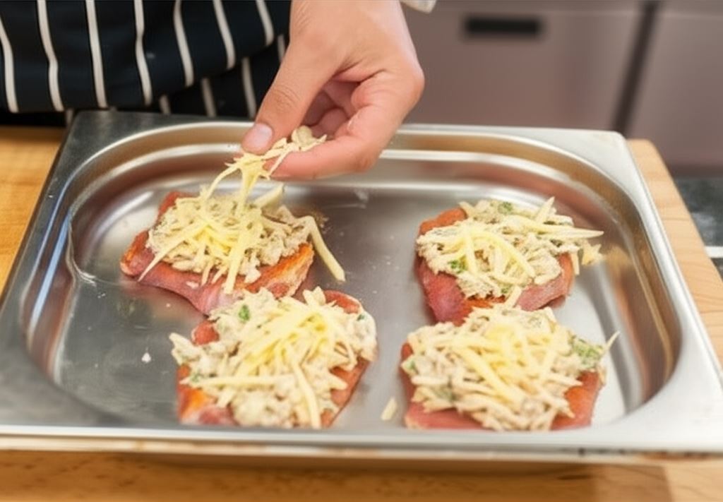 Sekret tego dania tkwi w idealnym połączeniu składników – chrupiąca, złocista skorupka z sera skrywa pod sobą kremowy farsz i soczyste mięso. Każdy kęs to harmonia smaków, gdzie delikatna słodycz pieczarek spotyka się z wyrazistością czosnku i świeżością natki pietruszki.