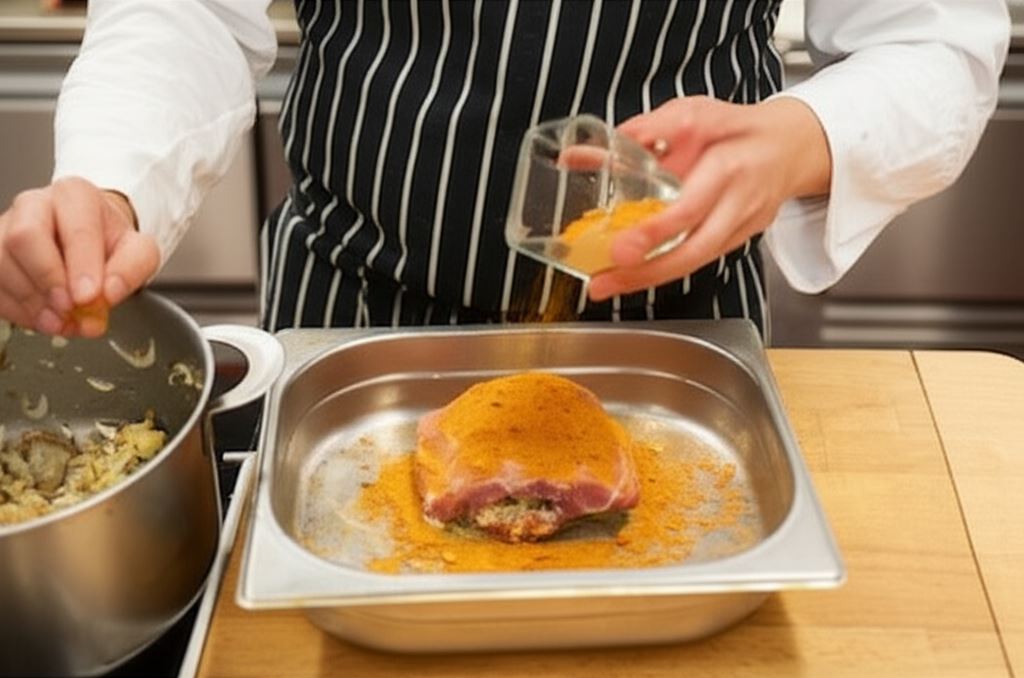 Marynowanie schabu przez 24 godziny to sekret jego wyjątkowego smaku. W tym czasie mięso wchłania wszystkie aromaty, a sos czosnkowy przenika do jego wnętrza, nadając mu niepowtarzalny charakter. Obsmażenie mięsa przed pieczeniem pozwala zamknąć soki wewnątrz, dzięki czemu pieczeń pozostaje soczysta.