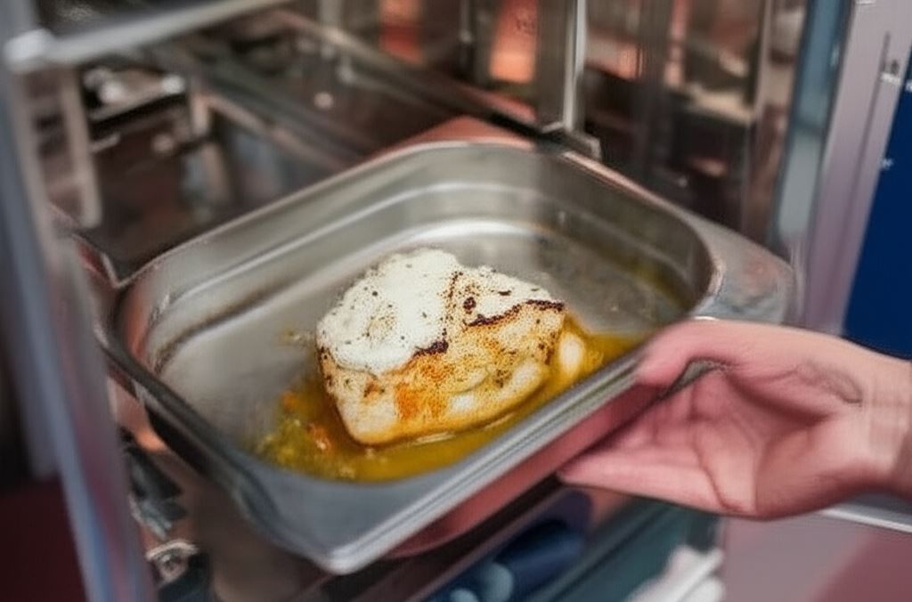 Mięso zalej wywarem z 500 ml wody i kostki rosołowej, piecz w piekarniku nagrzanym do 180 stopni C przez 45 minut. W razie konieczności dopiecz dodatkowe 10 minut w zależności od grubości mięsa.