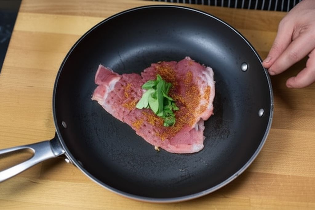Mięso opłucz, usuń błony i przerosty tłuszczu, potnij na cienkie plastry, po czym rozbij tłuczkiem. Schab posyp przyprawą Knorr, która nada daniu właściwego smaku i zwiększy soczystość mięsa. Każdy kawałek schabu złóż na połowę, w środek włóż listek bazylii. Każdy kotlecik dodatkowo oklep tłuczkiem, aby mięso dobrze się skleiło, a potem posyp mąką.