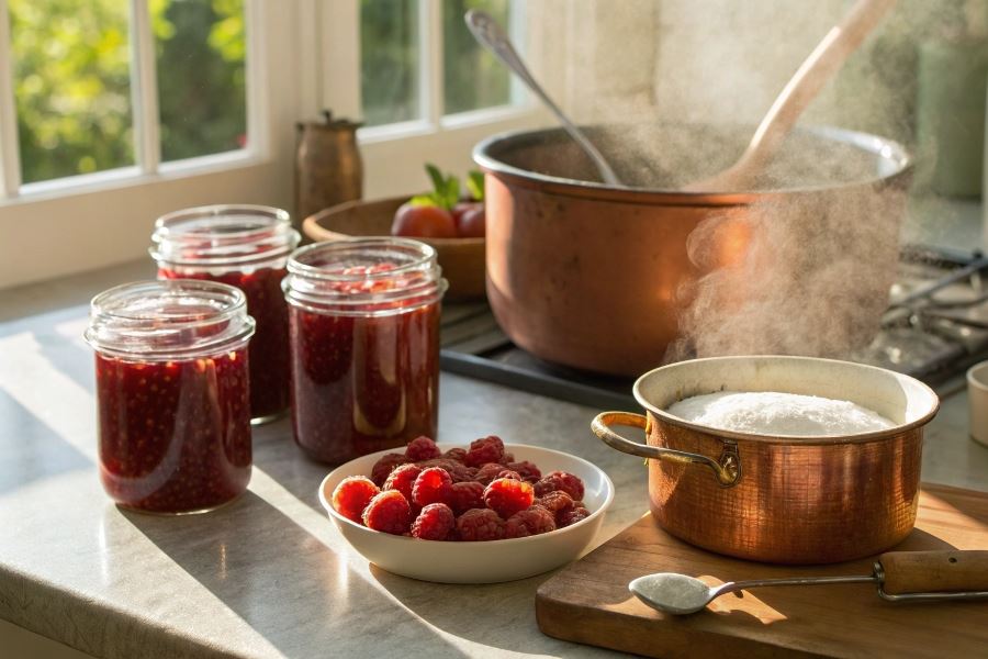 Sekret idealnej konfitury malinowej tkwi w dodaniu kilku kropel soku z cytryny, który nie tylko wydobywa naturalny smak malin, ale również działa jako naturalny konserwant przedłużający trwałość przetworu.