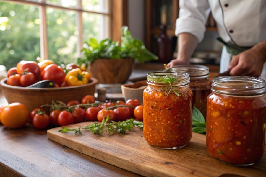 Przecier pomidorowy stanowi uniwersalną bazę do zup i sosów zimą. Kluczowe znaczenie ma pasteryzacja w temperaturze 90°C przez minimum 20 minut, co eliminuje potrzebę stosowania chemicznych konserwantów. Warto przygotować kilka wariantów przecieru:
