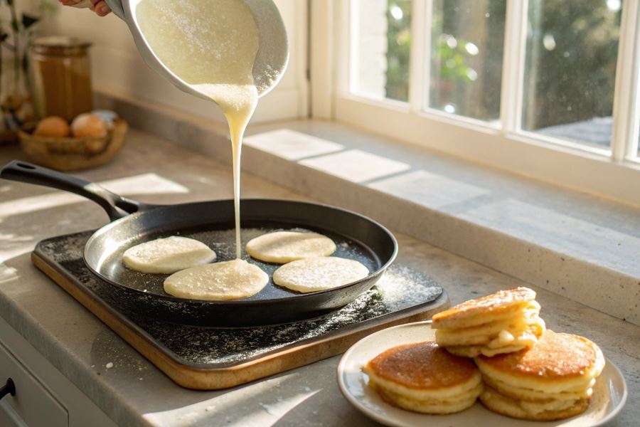 Sekret idealnych naleśników z kaszą manną tkwi w czasie odpoczynku ciasta. Minimum 30 minut pozwala kaszy napęcznieć i związać składniki w jednolitą masę.