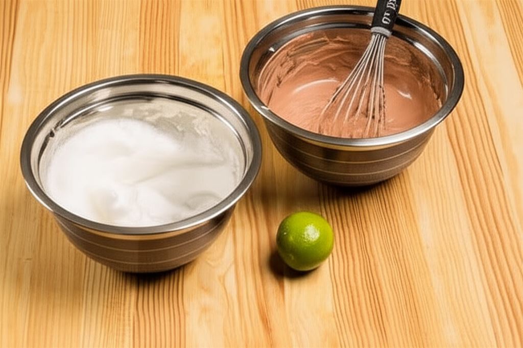 Ubij białka na pianę i wymieszaj z czekoladową masą. Dodaj startą skórkę limonki do smaku.