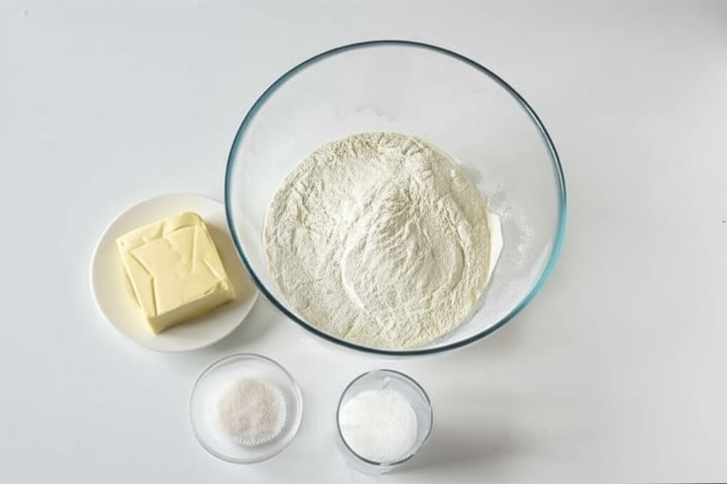 Przesiewamy mąkę z proszkiem do pieczenia. Siekamy razem z cukrem, cukrem waniliowym i masłem.