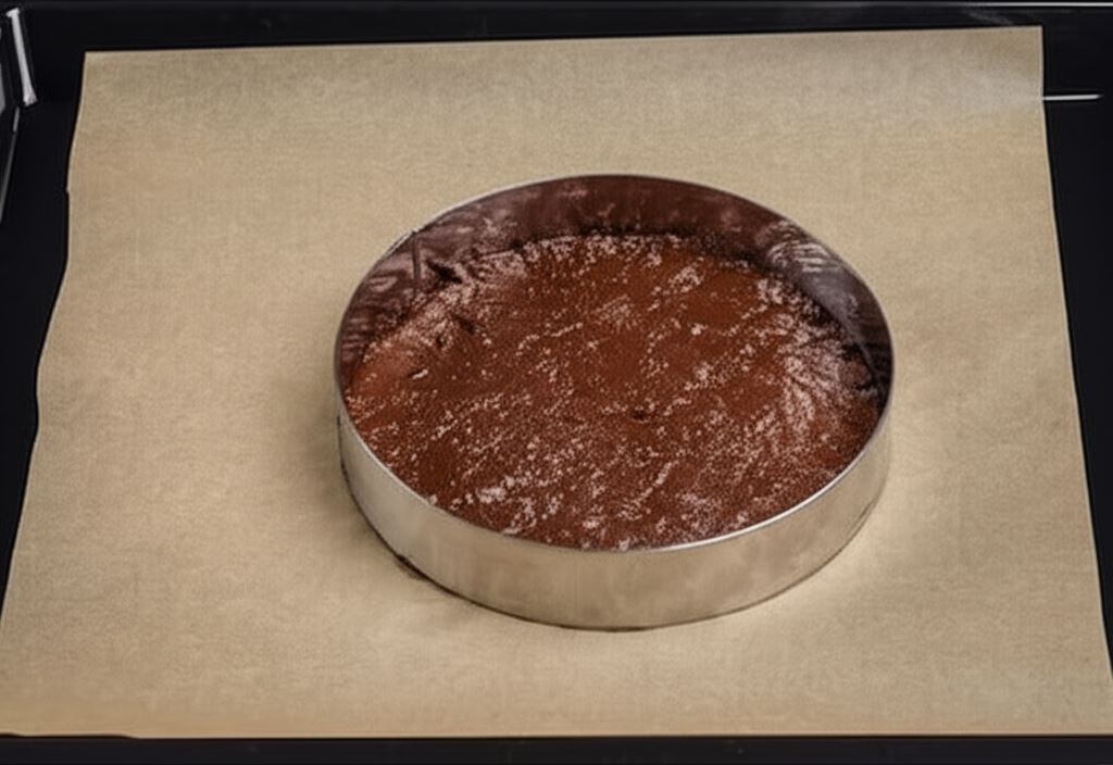Na spodzie formy tortowej o średnicy około 18cm rozprowadź masę czekoladową. Włóż do lodówki na co najmniej 2h.