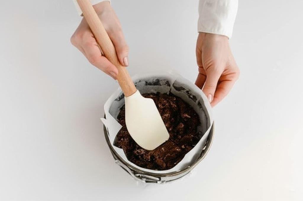 Formę tortową smarujemy masłem i wykładamy papierem do pieczenia. Na spód wsypujemy kruszonkę i dociskamy ją tworząc podstawę. Pieczemy w rozgrzanym do 180 C piekarniku przez ok. 10 min.