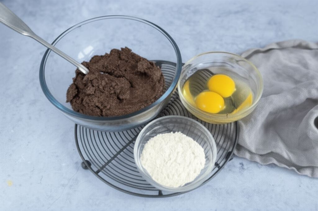 Dodaj jajka do masy makowej, a potem mąkę pszenną. Całość wymieszaj.
