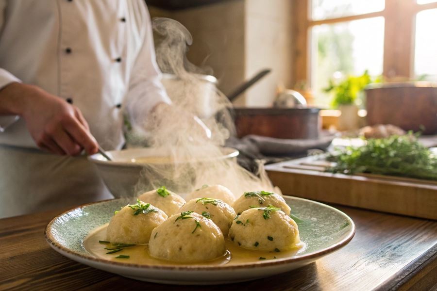 Wskazówka eksperta: Nie mieszaj klusek zbyt intensywnie podczas gotowania – delikatnie poruszaj garnkiem, aby zapobiec ich przyklejaniu się do dna.