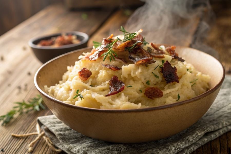 Proporcje to klucz do sukcesu – tradycyjnie na Śląsku zachowuje się stosunek ziemniaków do kapusty około 60:40, co zapewnia idealną równowagę między kremową konsystencją ziemniaków a wyrazistym smakiem kiszonki.