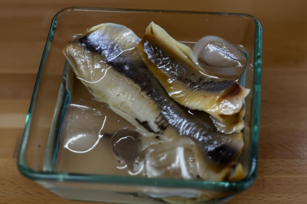 Śledzie opłucz pod bieżącą wodą, potem zalej zimną wodą z lodem i odstaw na 20 minut.