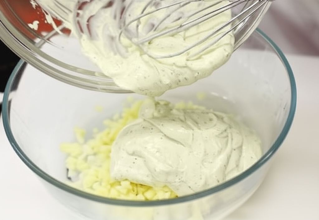 Połącz sos sałatkowy Knorr ze śmietaną.