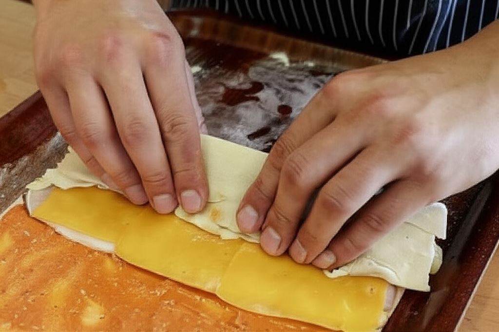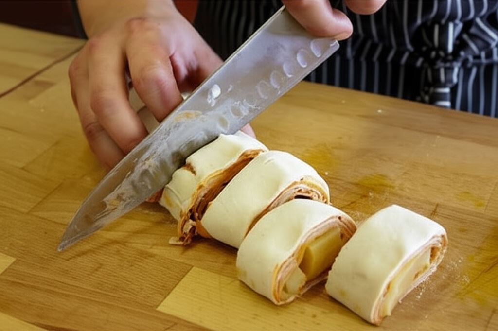 Zawiń dokładnie ciasto francuskie, aby utworzyła się rolada.