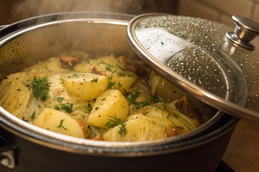 Duszona kapusta z ziemniakami przygotowana w multicookerze to połączenie tradycyjnego smaku z nowoczesną technologią. Kiedy składniki powoli gotują się w zamkniętym środowisku urządzenia, wszystkie aromaty i soki pozostają wewnątrz, tworząc intensywny bukiet smakowy, którego nie da się uzyskać w tradycyjnym garnku.