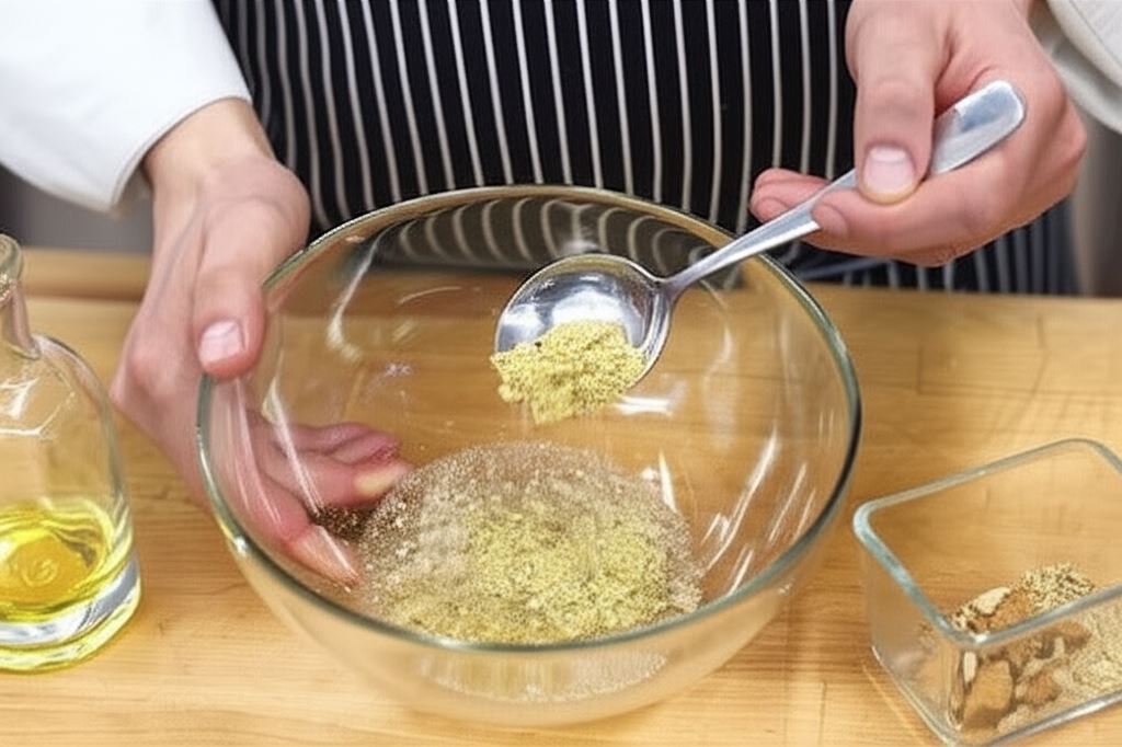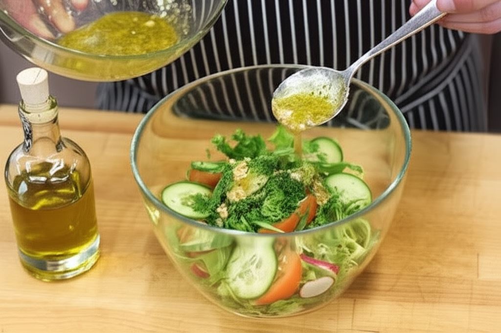 Połącz 80 ml oliwy z drobno posiekanymi orzechami włoskimi. Wlej 3-4 łyżki wody i sos grecki Knorr. Wszystko starannie wymieszaj.