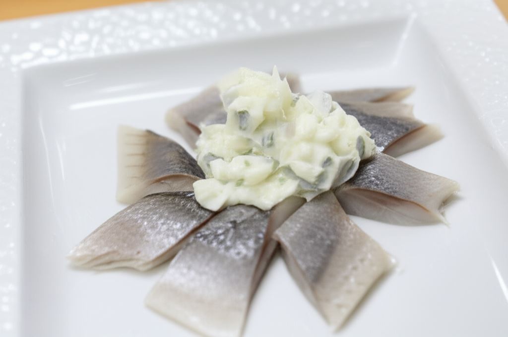 Śledzie z jabłkiem i cebulą w sosie śmietanowo-majonezowym