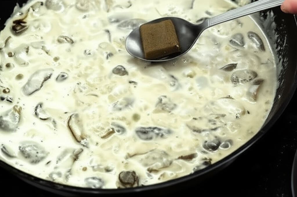 Przygotowany sos dopraw do smaku kostką Bulionu grzybowego Knorr.