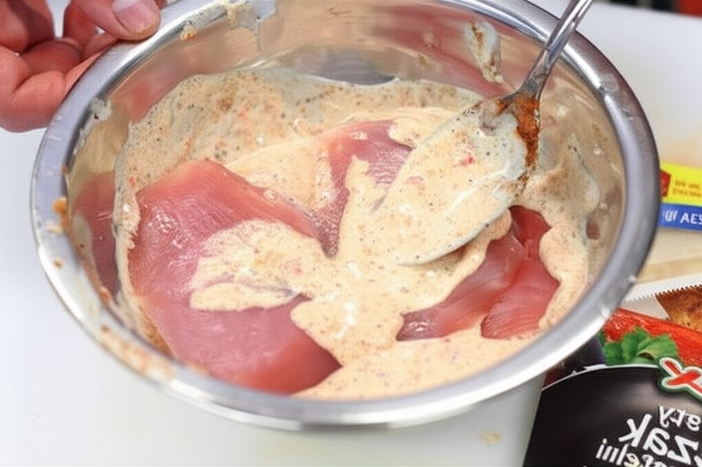 Teraz umieść kawałki indyka, połącz z marynatą i odstaw na parę minut do lodówki.