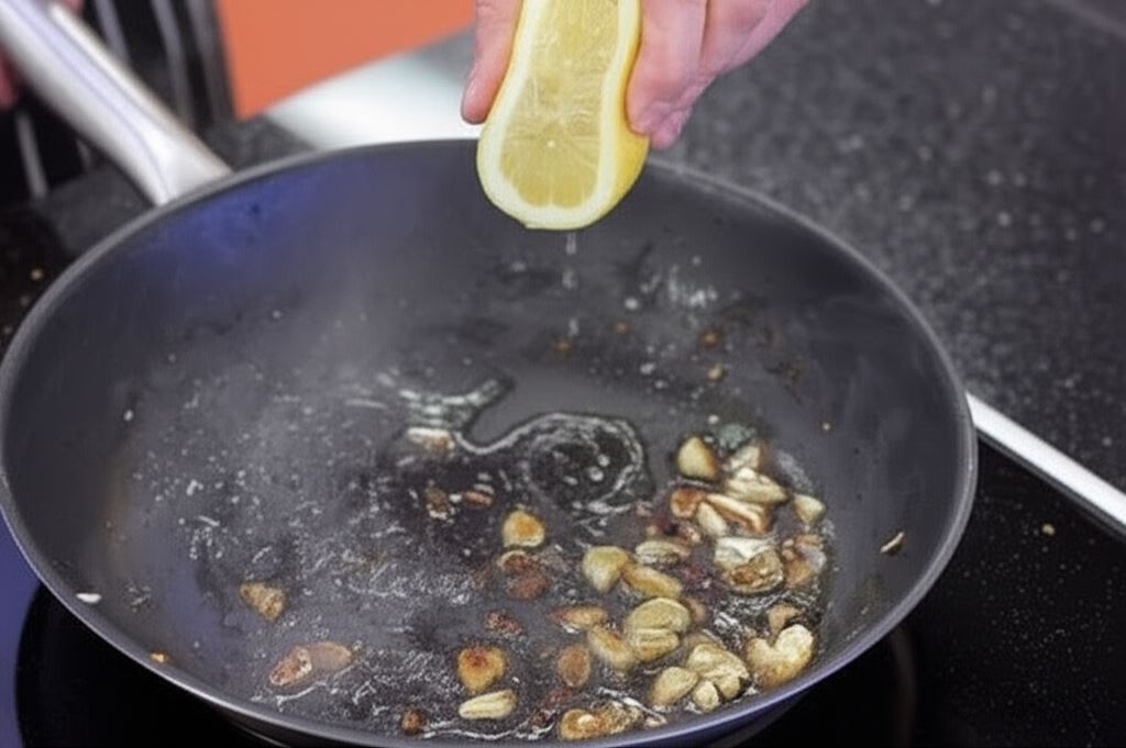 Usmażoną pierś potnij na plastry. Na tej samej patelni z odrobiną dodatkowej oliwy zrumień czosnek, wlej sok z cytryny i sos sojowy. Uzyskanym sosem oblej usmażone kawałki kurczaka. Piersi kurczaka, przed smażeniem możesz podzielić na mniejsze części, co zmniejszy czas ich smażenia. Aby wzbogacić aromat sosu możesz do niego wsypać posiekaną świeżą kolendrę.