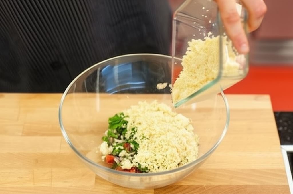 Tabbouleh to tradycyjna sałatka pochodząca z kuchni libańskiej i syryjskiej. Klasycznie przygotowywana jest z bułguru, ale w naszej wersji używamy kaszy kuskus, która jest łatwiejsza w przygotowaniu i równie smaczna. Nazwa „tabbouleh” pochodzi od arabskiego słowa oznaczającego „przyprawę”.