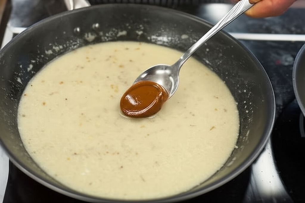 Bezpośrednio przed serwowaniem wrzuć masło do gorącego sosu i intensywnie zamieszaj, aby połączyć składniki w gładką emulsję.