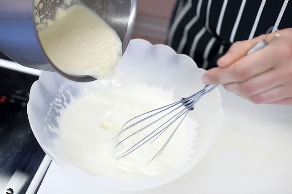 Przełóż do miski majonez i jogurt – razem wymieszaj.
