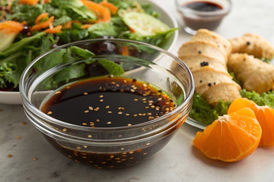 Sekret doskonałego sosu sałatkowego z sosem sojowym tkwi w proporcjach – umami powinno być wyczuwalne, ale nie dominujące, a kwasowość i słodycz muszą się wzajemnie równoważyć.