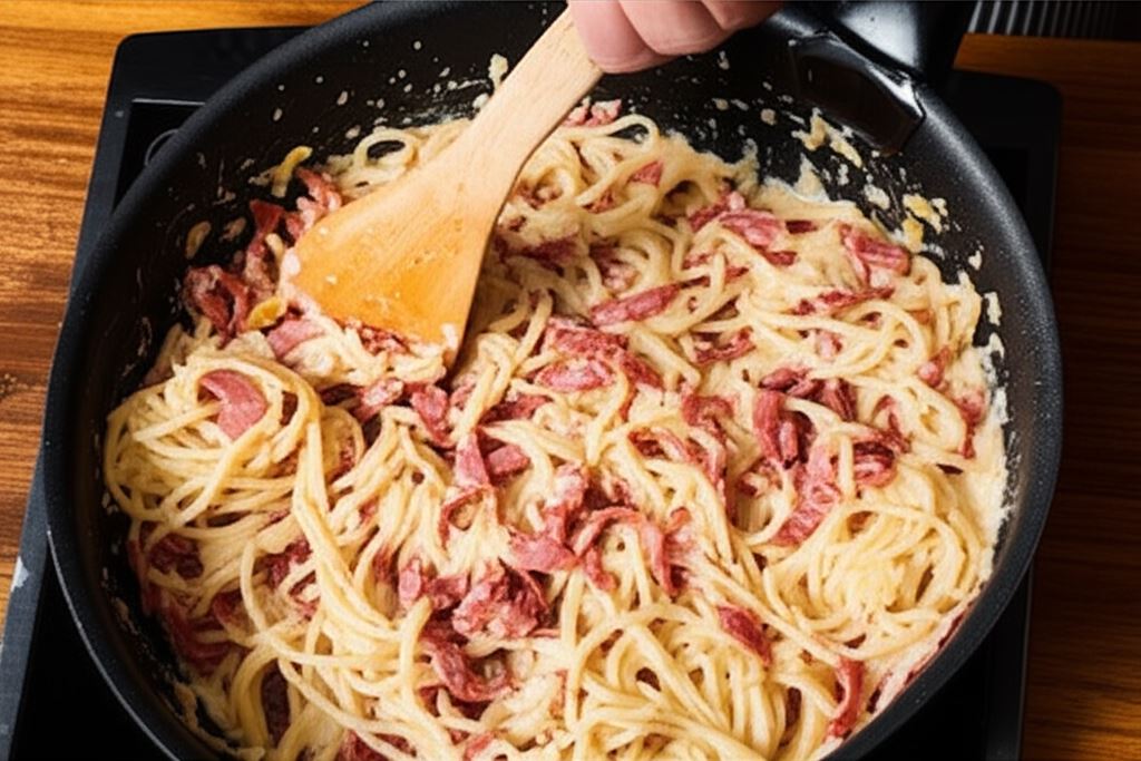Spaghetti Carbonara z Kiełbasą Pepperoni – Włoska Klasyka w Nowej Odsłonie