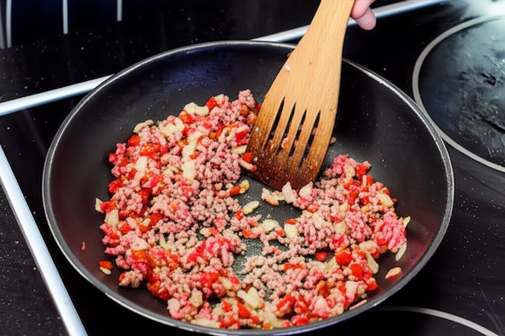 Mięso mielone smaż na tłuszczu przez 8 minut.