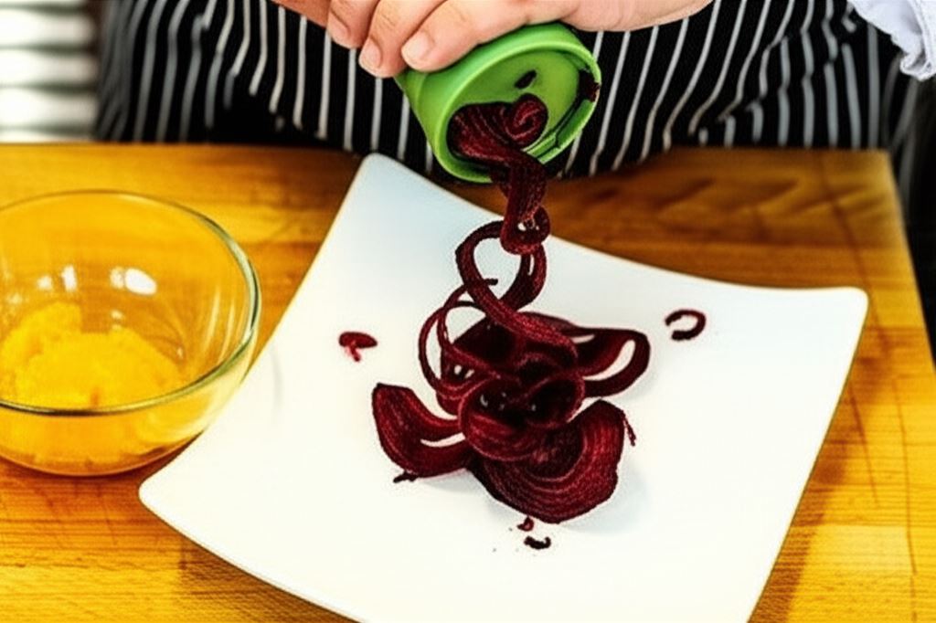 Wyobraź sobie talerz pełen intensywnie czerwonych, delikatnych spirali buraczanych, przełamanych soczystą pomarańczą i orzeźwiającą miętą. Ta kompozycja to nie tylko uczta dla podniebienia, ale również prawdziwa eksplozja kolorów na Twoim stole. Buraki w formie spirali nabierają lekkości i elegancji, a w połączeniu z cytrusowym sosem tworzą harmonijne połączenie słodko-kwaśnych smaków.