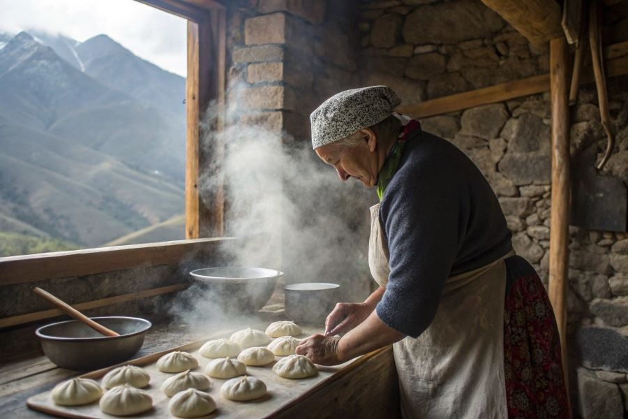 Parowany awarski chinkal to wyjątkowa potrawa wywodząca się z tradycji kulinarnej Awarów – jednej z najliczniejszych grup etnicznych Dagestanu. Historia awarskiego chinkala sięga wielu stuleci wstecz, gdy górale potrzebowali pożywnych i sycących potraw, które mogły dostarczyć energii w trudnych warunkach wysokogórskich. Pierwotnie chinkal awarski przygotowywano z prostych składników dostępnych w regionie – mąki pszennej lub kukurydzianej oraz mięsa owczego. Technika parowania, zamiast gotowania, rozwinęła się jako metoda pozwalająca zachować więcej wartości odżywczych i intensywniejszy smak potrawy.