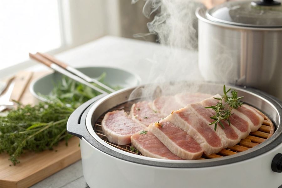 Gotowanie na parze oferuje wiele korzyści dla jakości przygotowywanego schabu: