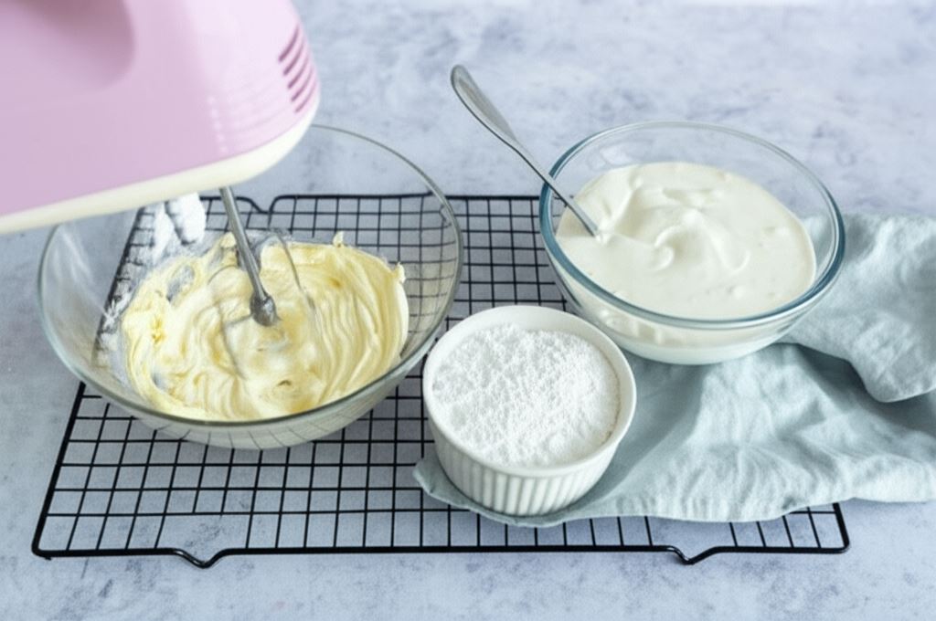 Miękkie masło wymieszać z cukrem pudrem. Wsypać twaróg i połączyć składniki.